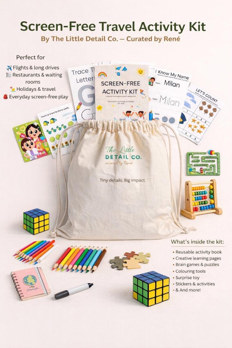 Perfect for flights, long drives, restaurants and quiet play time, each kit includes a selection of engaging activities that help children stay busy without screens.